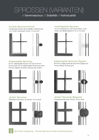 Die Sprossen können als kompletter Vorsatzrahmen Aluminiumsprosse zw. den Glasscheiben in den
